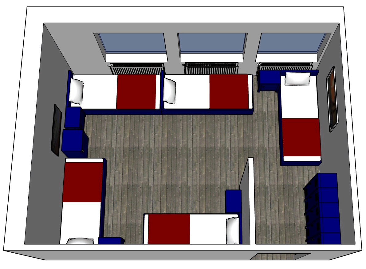In diesem 5-Bett-Zimmer buchst du ein Einzelbett und ein Gemeinschaftsbad.